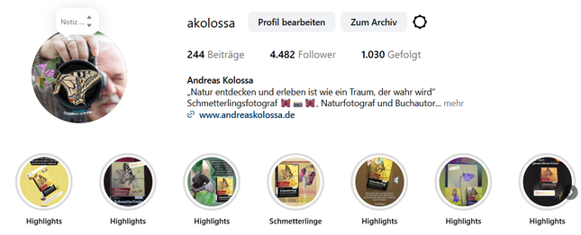 Lieber Andreas, nachdem ich Dein Buch über das Fotografieren von Schmetterlingen gelesen habe, kann ich nur sagen: "Hut ab"! Deine Kenntnisse über diese schönen Insekten und Fotos sind einfach umwerfend. Es ist ein Genuss und eine Freude, die vielen schönen Bilder zu betrachten. Weiterhin viel Erfolg bei der Jagd mit dem Fotoapparat.